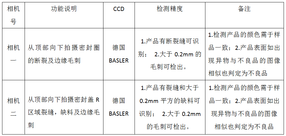 注:1. 因外观检测中环境对检测结果影响较大,产品表面如附有粉尘及毛线等会造成结果的误判,所以机器需置于良好的环境中,建议为无尘车间。