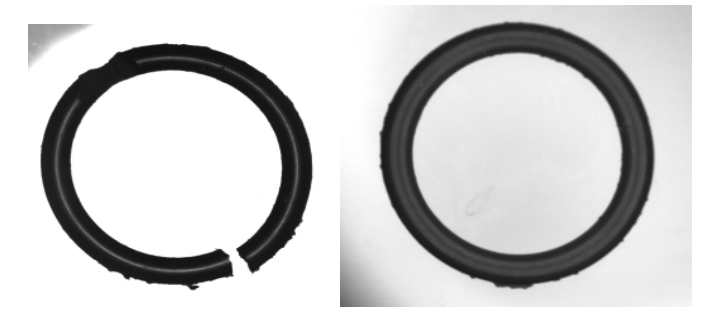 1)、相机 1#检测系统实现对密封圈的断裂及外边缘毛刺的检测,如下图: