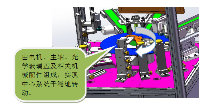 2. 中心运动系统:由伺服电机、主轴、玻璃盘及相关配件组成,实现中心系统平稳地转动;
