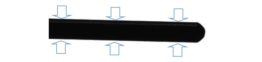 1)、1#顶部相机(局部):由顶向下拍摄精密轴件杆部,检测精密轴件杆部的直径尺寸,软件可分前中后三段检测,如下图: