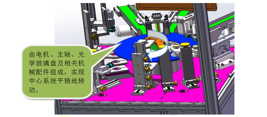 2. 中心运动系统:由伺服电机、主轴、玻璃盘及相关配件组成,实现中心系统平稳地转动;