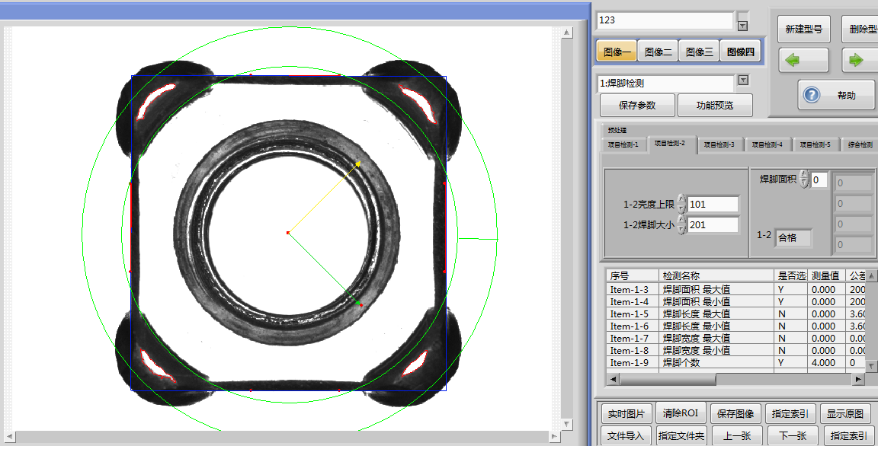 4.软件分析控制系统:相机取像后,通过主机软件分析,判定焊接螺母的属性:合格品、不合格品、待检品三种;